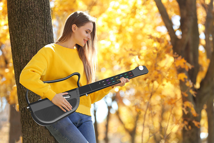 其次,无弦吉他具备出色的便携性。相比传统吉他较大的体积和重量,无弦吉他通常设计得更为轻巧紧凑,方便携带外出,无论是户外演出、旅行途中的音乐创作,还是日常的练习,都能轻松应对。