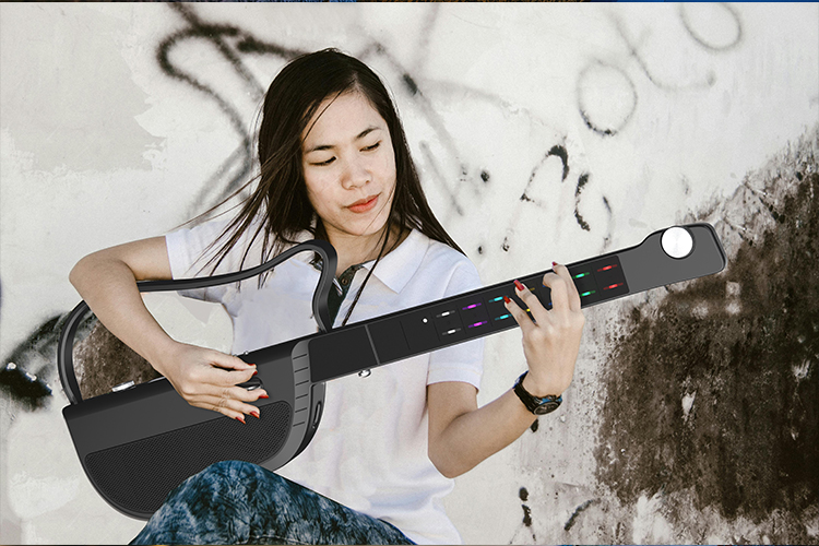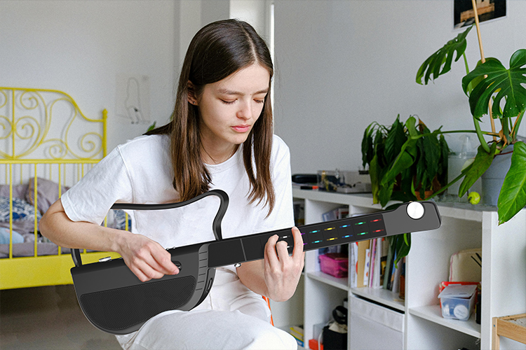 取消物理琴弦后,演奏者无需承受按弦疼痛,通过触控对应和弦位置即可发声,复杂和弦信手拈来,让音乐新手快速享受演奏乐趣。其极简操作逻辑甚至能让无音乐基础的用户轻松弹出歌曲伴奏。